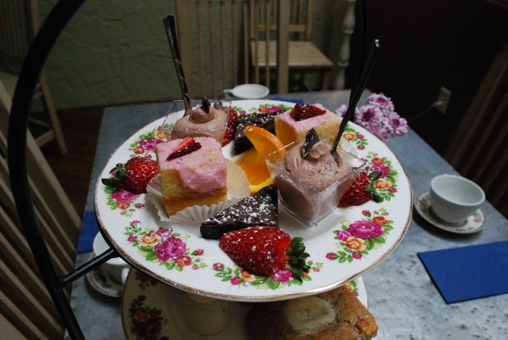 Surely the scones create loyal customers of their own. The menu regular features four flavors (buttermilk, lemon, raisin and cherry almond) and one special flavor each month (April’s is a spectacular raspberry cream cheese, May’s will be blueberry cinnamon), and they’re served warm with your choice of clotted cream, raspberry preserves or tart lemon curd. Besides the superb scones, the Full Afternoon Tea also comes with a variety of tea sandwiches, such as cucumber & minted cream cheese, chicken salad, egg salad, cheddar & tomato chutney and roast beef & Boursin. Wrap up tea with some sweet treats like chocolate mousse, peppermint chocolate brownie bites, or lemon cake with strawberry frosting.