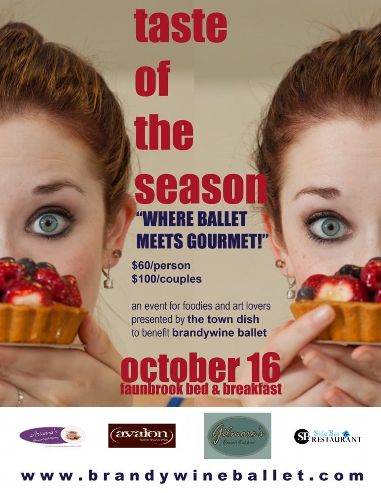 The upcoming “Taste of the Season” fundraising event, with proceeds to benefit Brandywine Ballet, will offer a sophisticated evening for foodies and art lovers alike, pairing incredible eats and wine aside a sneak peek of the upcoming 2011–2012 performing season of the local, established dance organization.
