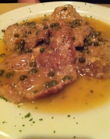 The highlight of the meal for my date was the Veal Piccata (above, to right). Sauteed veal scaloppini with lemon, capers, and a white wine butter sauce. The veal was tender and she could cut it with her fork. I was fortunate that she let me try a piece. The zest of the lemon with the veal was excellent.