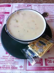 The soup was a choice of Vegetable or New England Clam Chowder. I chose the clam chowder, which proved to be creamy goodness in a cup. I was surprised at how thick and creamy it was.