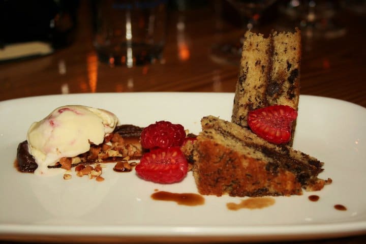 For dessert, the obvious pairing was the Exit 13 Chocolate Stout, which arrived with some brilliant banana bread with raspberry swirl ice cream and chocolate-banana butter. There was a welcomed hint of smokiness throughout the dessert due to the addition of crumbled pecans that are smoked over wood chips. The smokiness combined with the lightness of raspberry and banana made this dessert an easy crowd favorite.