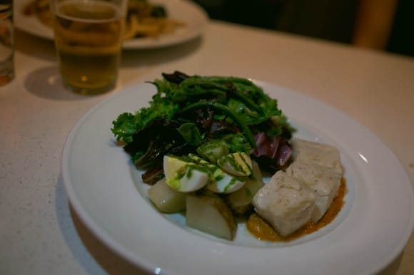 Xato-Catalan Niçoise served with Romesco sauce, oil-cured tuna, fingerling potatoes, hard-boiled egg, haricots verts with olive vinaigrette.