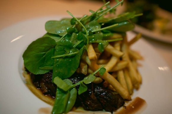Steak Frites: an 8 oz. all-natural hanger steak served with bordelaise and salad verte—and of course, a hearty dose of fries.
