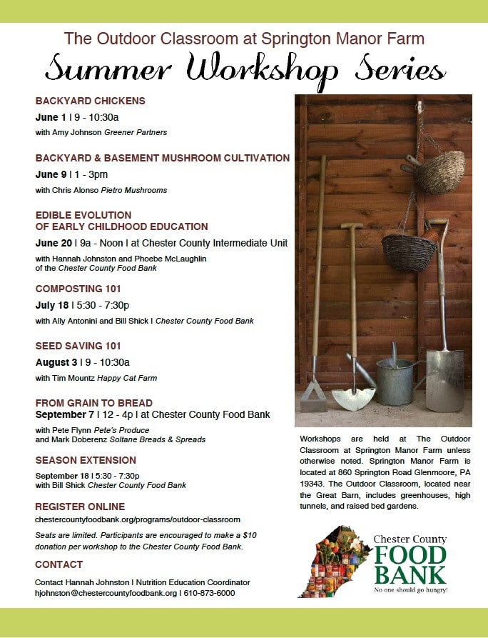Join the Chester County Food Bank for a series of summer workshops at Springton Manor Farm!