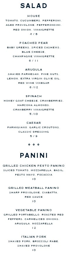Look for classic dishes—like Tuscan-Style Meatballs, Paninis and Spaghetti & Meatballs—as well as modern takes on Italian fare, including Short Rib Pizza, Grilled Bronzino and Poached Pear Salad.