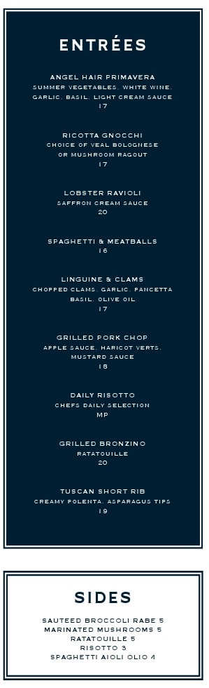 Check out the whole menu below, then make a reservation and mangia!