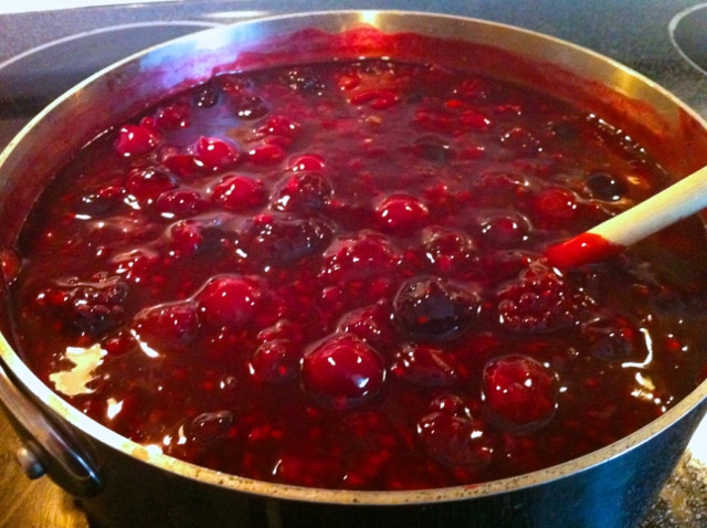 5. Add berries and gently combine. Bring back to a simmer.