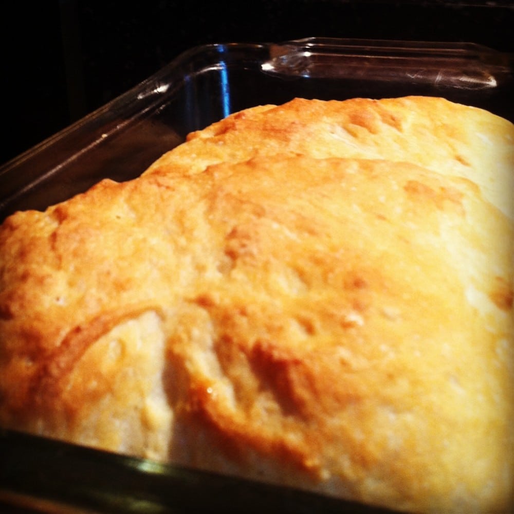 Preheat the oven to 425ºF. Grease two oven-safe Pyrex bowls (approx. 1 L or 1.5 L or 1 qt or 1.5 qt) with a tablespoon of butter each. Using two forks, punch down your dough, scraping it from the sides of the bowl, which it will be clinging to. As you scrape it down try to turn the dough up onto itself. Take your two forks and divide the dough into two equal portions. Then scoop up each half and place into your prepared bowls. Let the dough rise for about 30 minutes or until it has risen to just below or above (depending on what size bowl you are using) the top of the bowls.