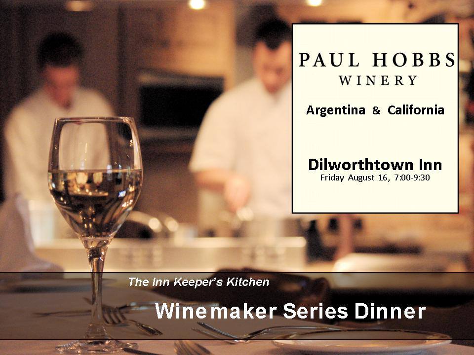 Paul Hobbs, an iconic California winemaker, is coming to the Dilworthtown Inn and the Inn Keeper’s Kitchen on Friday, August 16, from 7 to 9 p.m., as part of Dilworthtown’s ongoing Winemaker Dinner Series. Guests will have the opportunity to enjoy a phenomenal six-course meal prepared by Chef Aaron Wilson while enjoying wines from California and Argentina. Hudson Austin, from The Wine Merchant, will be representing the winery at this one-of-a-kind event.