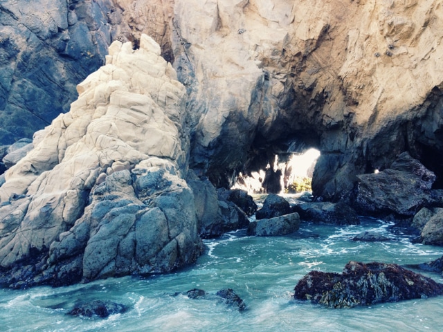 If you’re picnicking, pass on the tourist heavy spots and spread your blanket out at Pfeiffer Beach. It’s ‘that beach with the big rock with the hole in it,’ as I described it. A bit farther down the road is Julia Pfeiffer Burns State Park. Try your darndest to be there for sunset. The trail you’ll travel down takes you past a famous waterfall and lagoon to a straight shot of the coastline, where you can watch the sun set the sea on fire. BYOB, s’il vous plait.