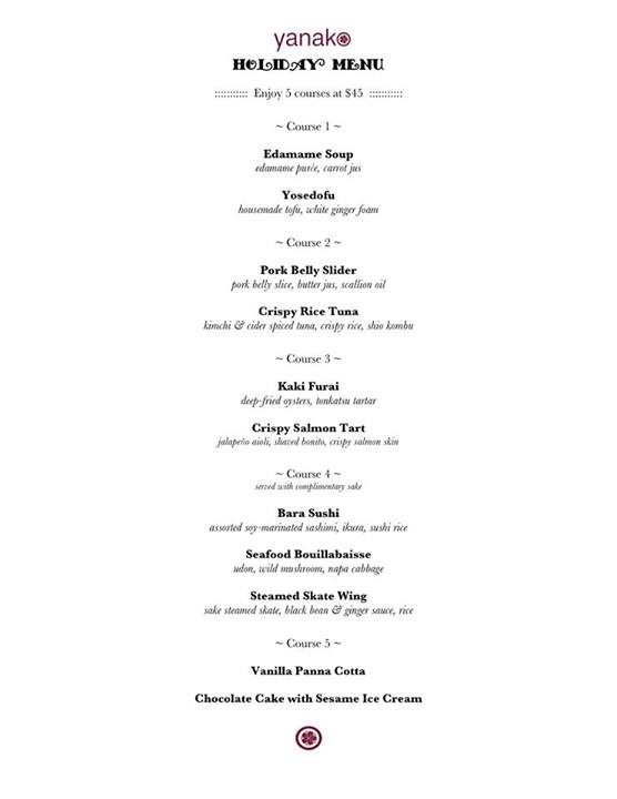 Yanako Christmas menu