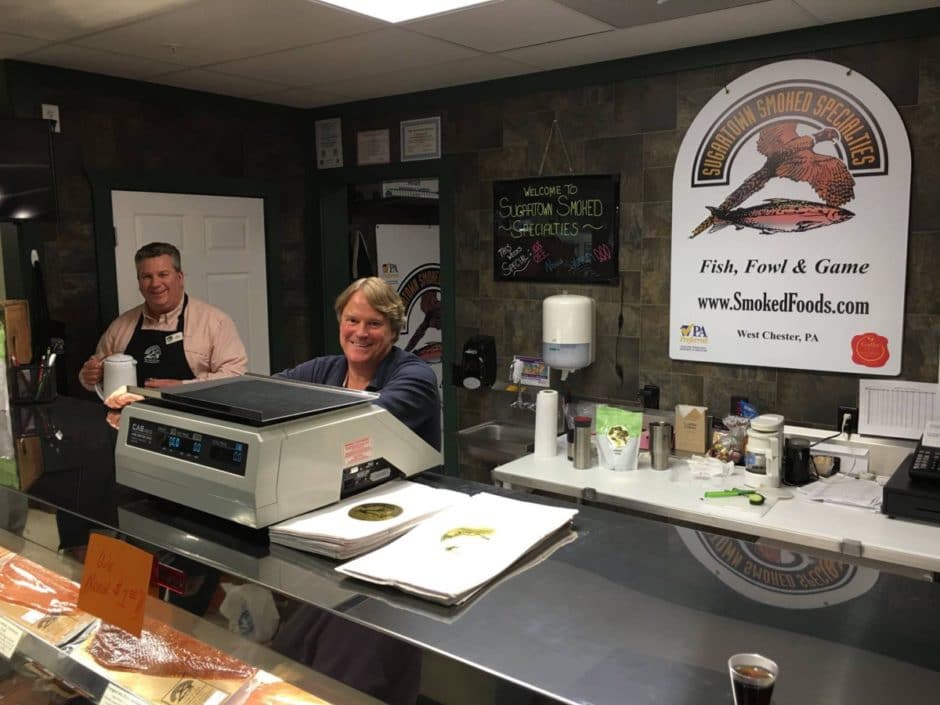 When the Concordville Wegmans was being constructed, the corporate office sent employees to scout potential local vendors. One employee thought Sugartown’s product at Hill’s Seafood looked exceptional, and the top seafood manager from Wegmans in Rochester asked Scott to send samples. When Scott followed up a few days later, the manager said, “Are you kidding me? I just finished chewing the Arctic char, and that is the most amazing smoked fish I’ve ever eaten in my life. I want to you to send me samples of every seafood item you have.”