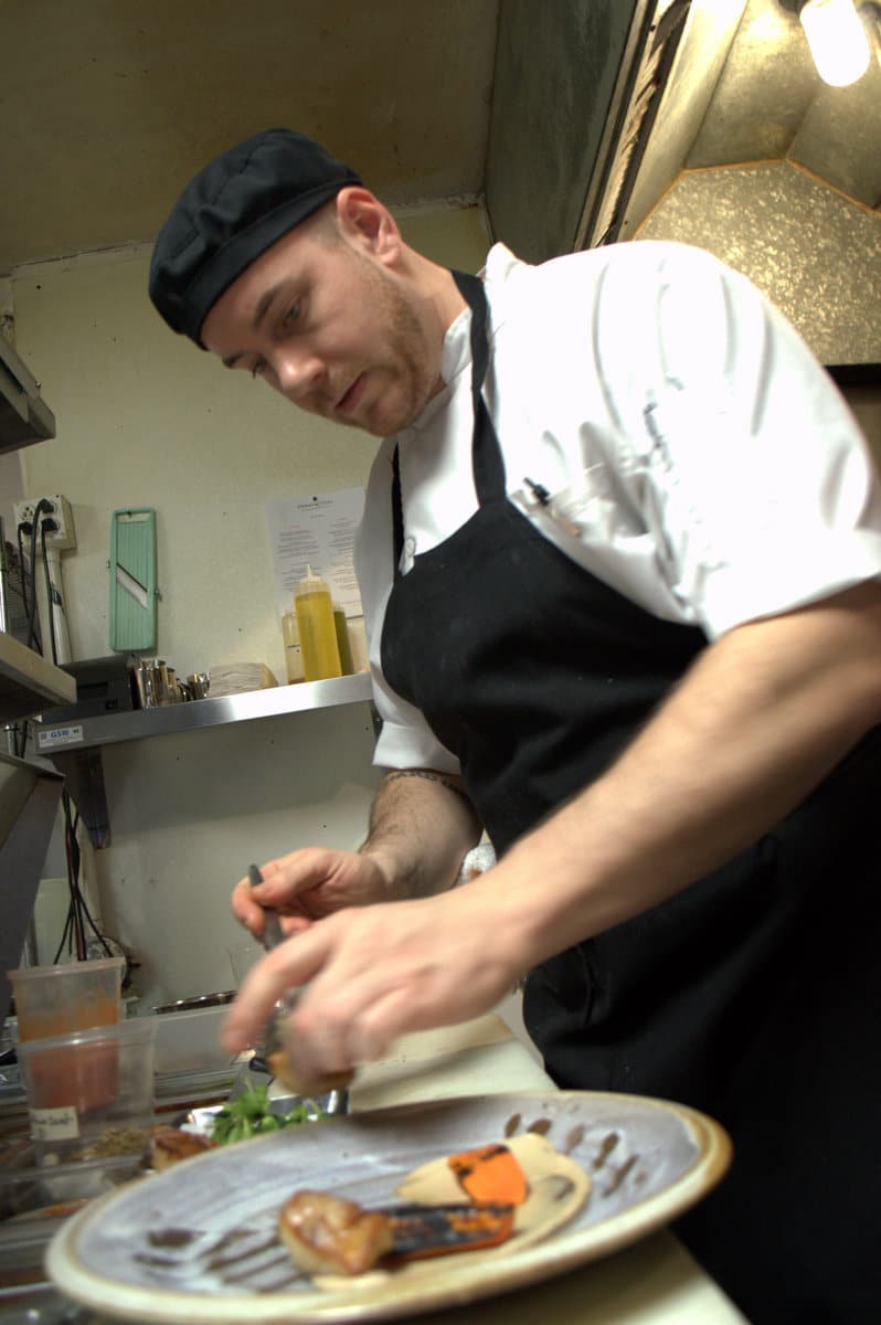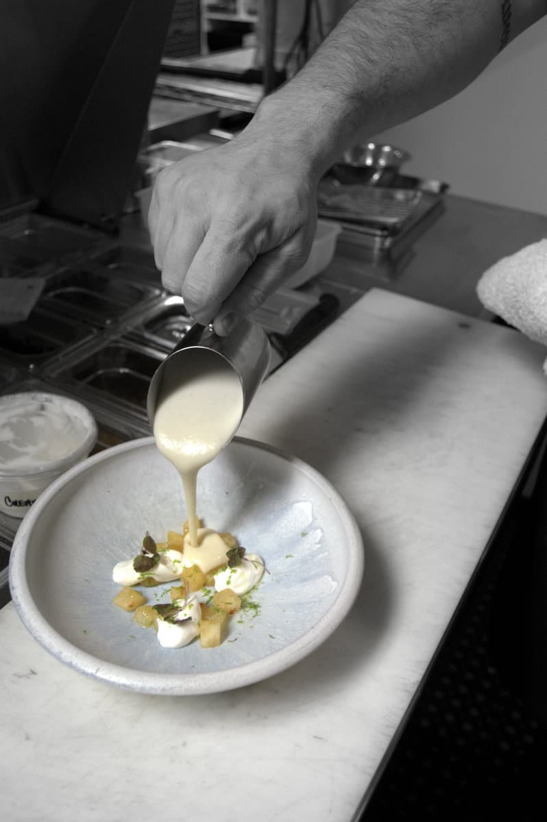 With no music cranking through the near-cubicle sized kitchen at the Wilmington spot, Kalup sports the classic chef coat that has been cast off by so many younger cooks and chefs for the more contemporary t-shirt and jeans look. Rather, Kalup’s five-person crew is sharp and disciplined. Nearly three years running the kitchen, Kalup brings a pedigree rich in serious kitchen chops. From Chicago’s Blackbird, Chef Kalup is not so much about trends and being trendy, but more about clean lines and intentional food strokes.