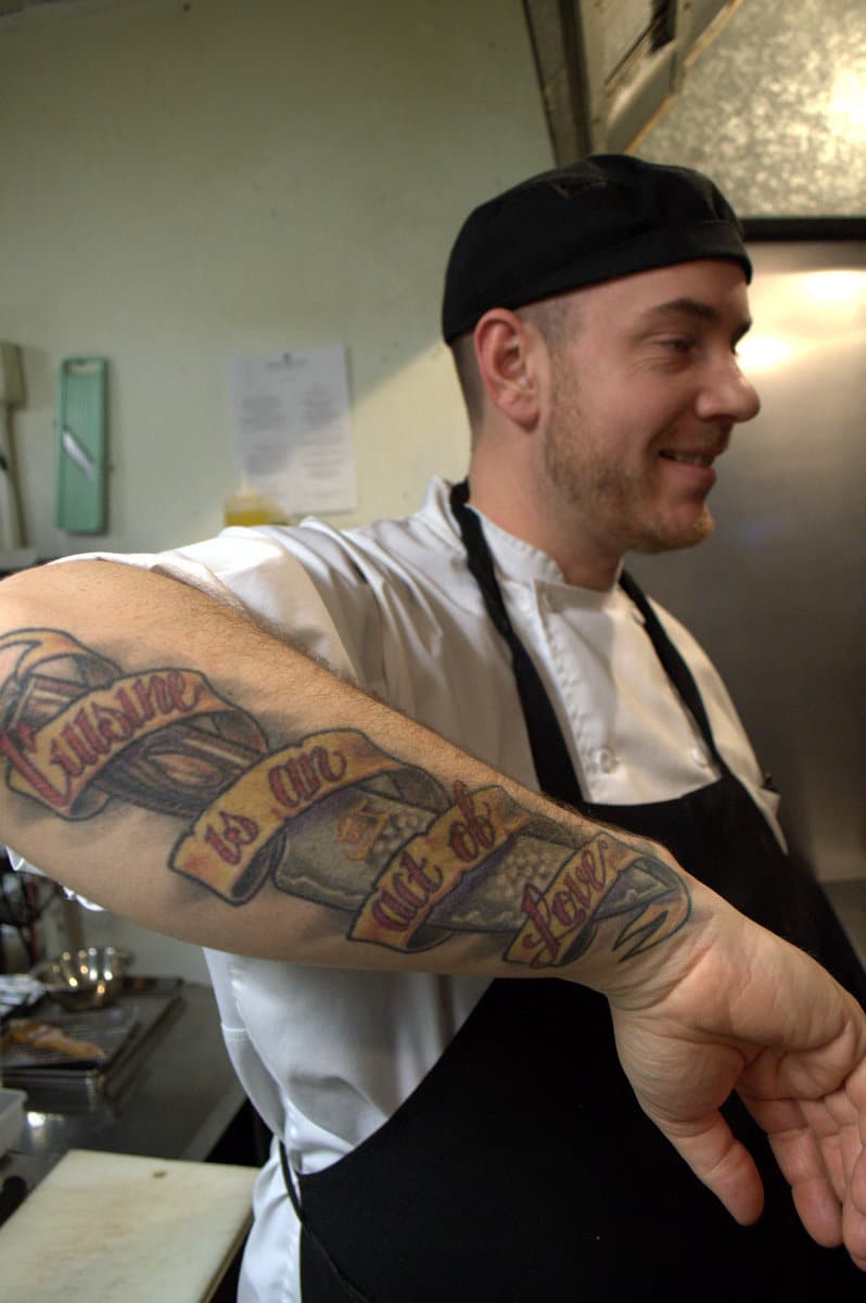 The foot-long tattoo, “Cuisine is an act of love,” adorns Kalup’s right arm. So maybe he’s just a little more bent on the contemporary scene than the first impression would imply. Travel and Twitter are fodder for feeding Kalup’s creative appetite. Still, Kalup is practicing a regimented technique grounded in formal education blended with a hearty dose of hands-on experience. With Domaine Hudson as a cathedral in which to dispense his culinary catechism, Chef Kalup’s food delivers remarkable energy.