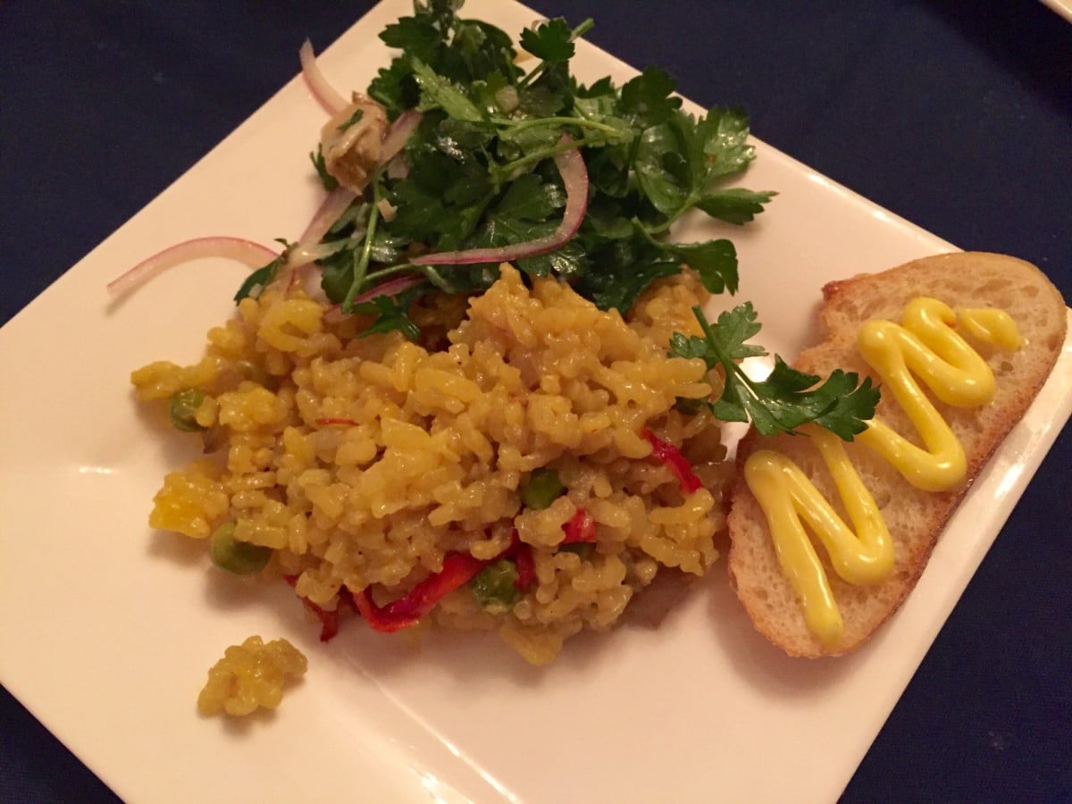 Vegetarian Option—Vegetarian Paella Valencia, Artichoke and Tomato Salad, Saffron Aioli