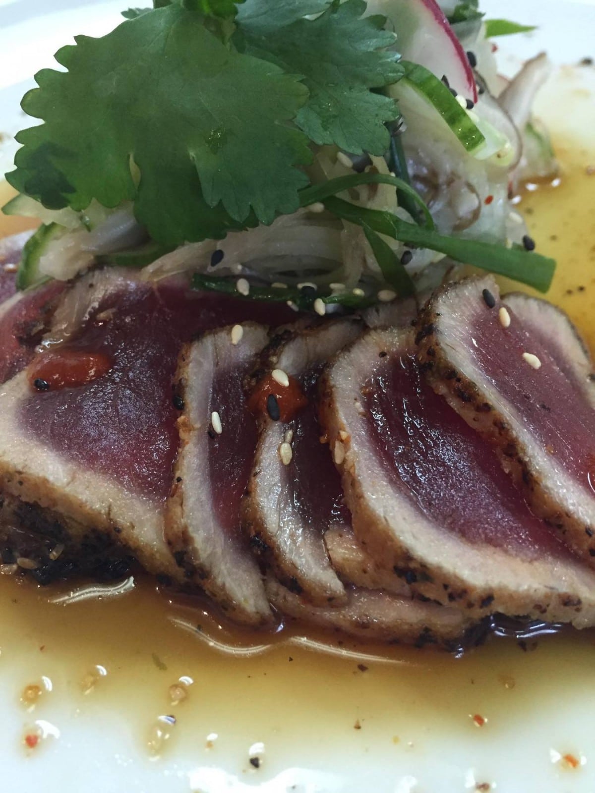 Appetizer standouts thus far include the tuna tataki and maple glazed pork belly, as well as “Grandma M’s Meatballs,” a family recipe including homemade marinara.