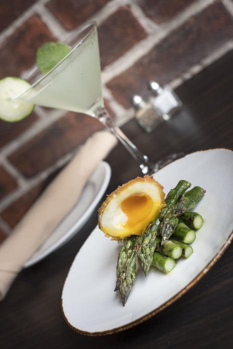 Grilled Sugartown asparagus ($7) gets bragging rights as the greenest local stalks, serving as the perfect stack for breaking a parmesan-crusted gooey six-minute egg over. More shaved parmesan on top makes this one of the prettiest plates to devour.
