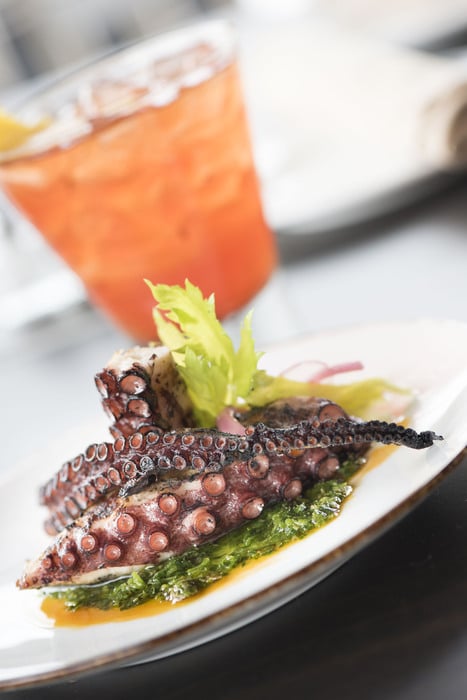 The wood-grilled octopus ($14) will clutch you at first bite with flavor and inherent texture that’s precisely crisped in all the right places, then stacked with pickled onion, chile oil for bite and a clean green kale pesto as its canvas. This one is as beautiful as it is fun.